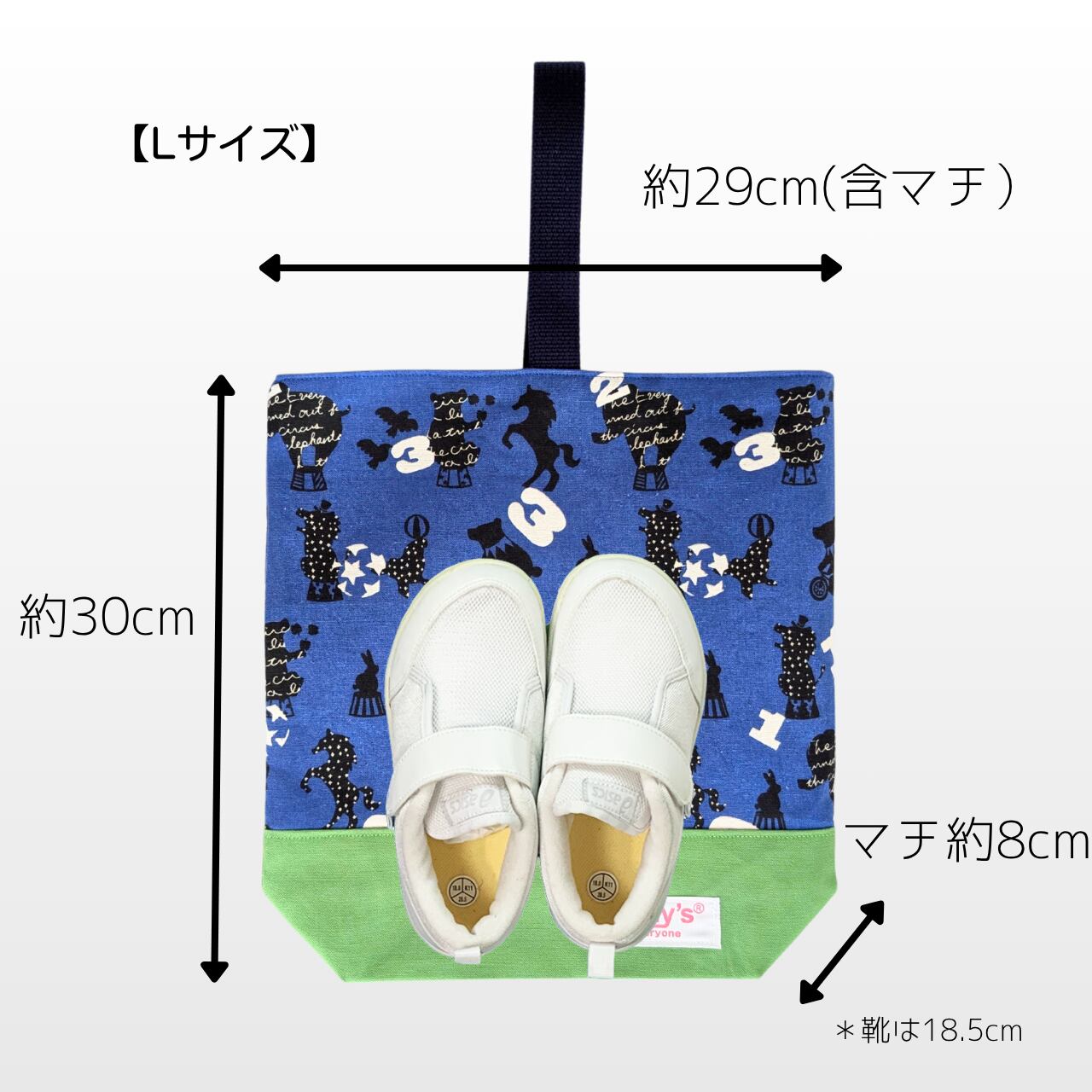 *「お子様の足の成長を守る」かかとのしっかりした靴を入れることを想定しています。バレーシューズのような薄い靴の場合、スペースが余り過ぎる場合がございますのでご注意ください。